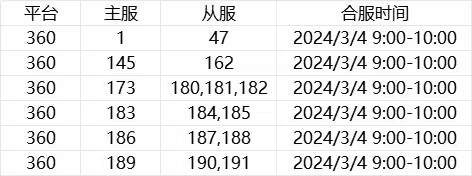 2024年03月05日09:00—10:00点部分服务器参与合服。
